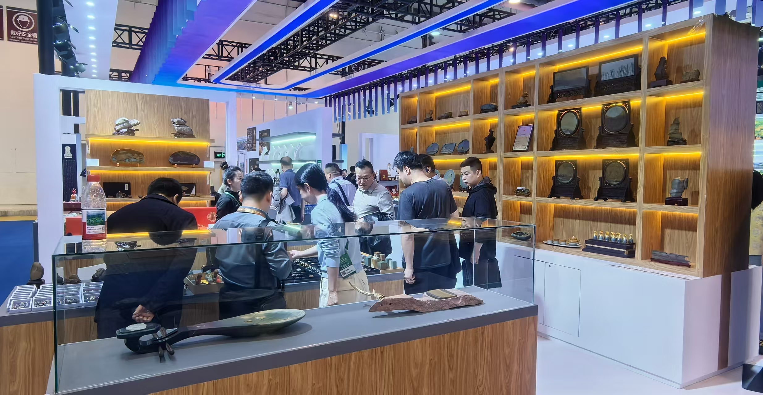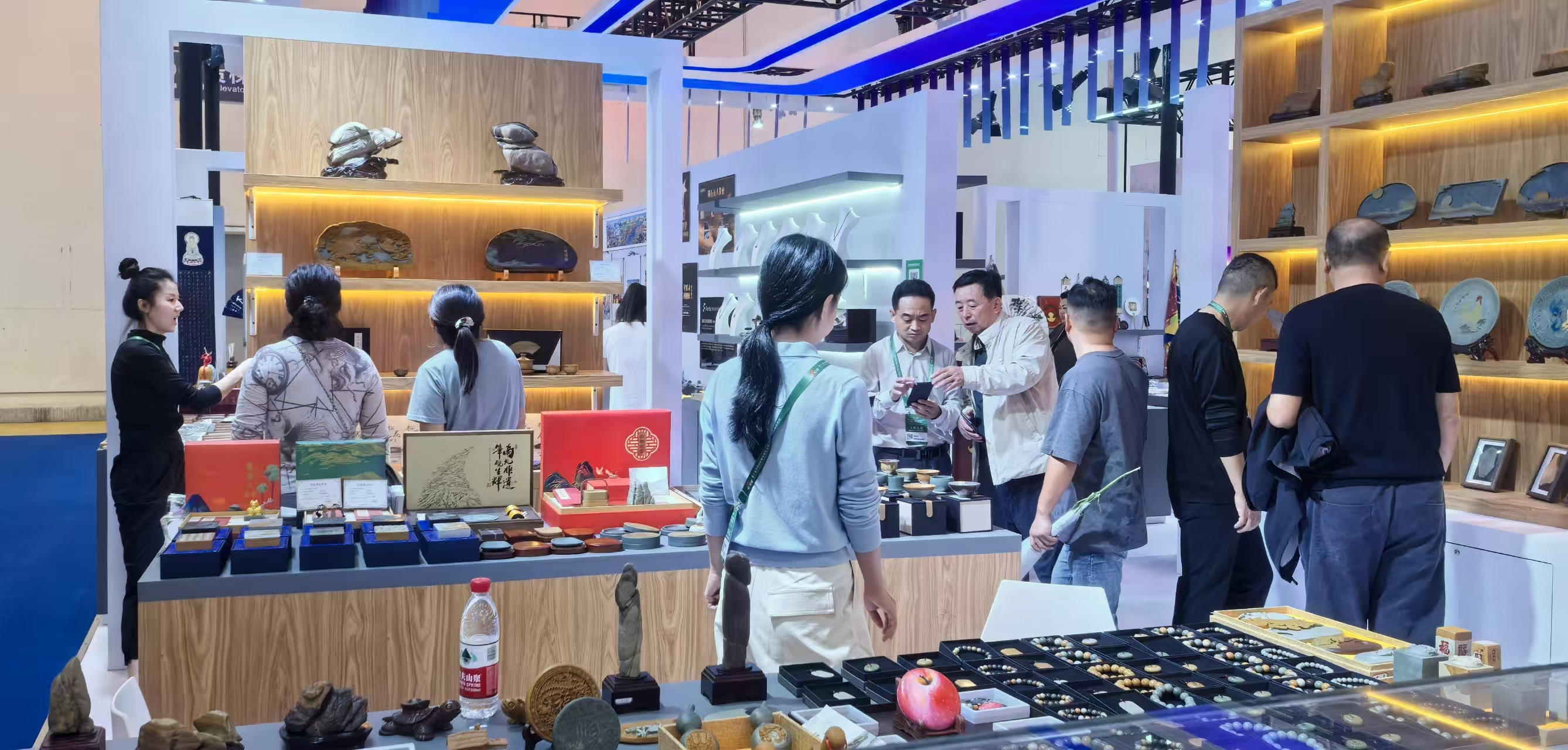 展会期间,白山江源松花石展区人气持续高涨。参观者被松花石独特的纹理与色彩吸引,纷纷驻足欣赏、拍照记录,并与工作人员交流,深入探讨松花石的文化内涵及版权保护实践情况。不少观众表示,通过此次展览,不仅对松花石文化有了更系统的了解,也切实感受到版权保护在文化传承与创新中的重要作用。