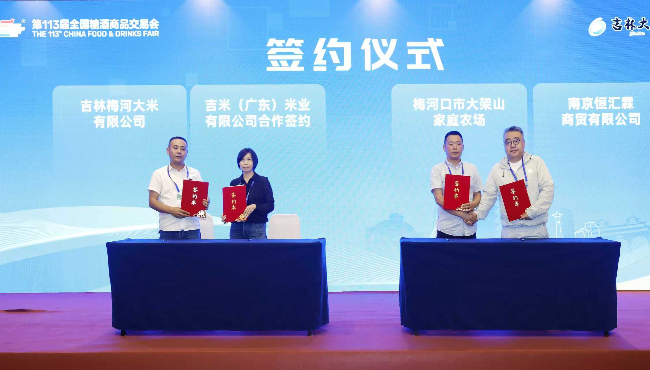 位于1号馆的吉林粮食展区汇聚了梅河大米、梅河鲜食玉米特色产品。由于“皇粮御米”品质超群,吸引了万余人次来此参观、咨询、试吃。参展企业负责人表示:“宁可为品质多付成本,也不为销量降低标准。梅河大米坚守本地种植与精细加工,拒绝以次充好,只为每一粒米都对得起‘中国皇粮御米之乡’的称号。中粮集团董事长李国强专程来到展区调研,在品鉴“中科发五”米饭后 ,连声赞叹:“品质好、口感好。”南京市领导对梅河大米也给予了较高评价。 10月16日,吉林省粮食和物资储备局在南京国际博览中心举办吉林大米、吉林鲜食玉米品牌专场推介会,相关负责人表示,吉林省中高端大米年销量26亿斤,实现了从‘种得好’到‘卖得好’的跨越,同时大力推进玉米主食化。会上,众多客商纷纷对梅河大米、梅河鲜食玉米给予好评,认为东北地区能把“中科发五”大米卖到每公斤20元以上的,只有梅河大米。