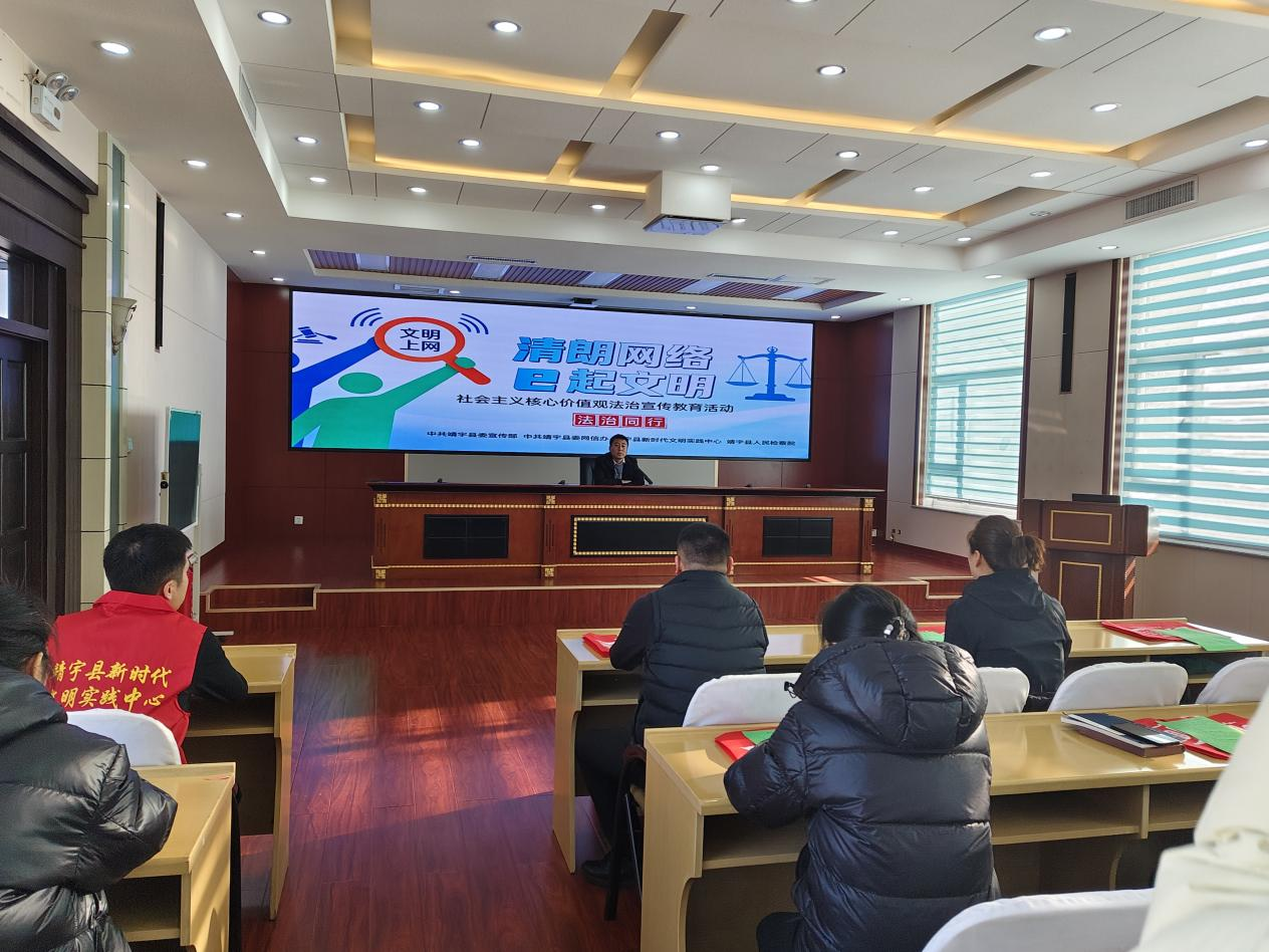 为进一步培育和践行社会主义核心价值观,加强网络精神文明建设,营造风清气正的网络环境,12月12日,靖宇县委宣传部、县委网信办、县新时代文明实践中心联合县人民检察院、靖宇镇联合社区开展“清朗网络 e起文明”主题文明实践活动,采取“理论+实践”“宣传+互动”的形式,增强机关干部和辖区群众的网络安全意识和文明上网意识,让网络文明理念走进千家万户。 在全国文明单位靖宇县人民检察院五楼会议室,一场集理论宣讲、业务知识提升为一体的“清朗网络 e起文明”社会主义核心价值观法治宣传教育活动在此展开。县委宣传部工作人员围绕《社会主义核心价值观与网络精神文明建设的关系》展开宣讲。深入剖析了社会主义核心价值观的内涵,并结合生动案例阐述了其在网络精神文明建设中的引领作用。县委网信办工作人员围绕“网络精神文明建设、网络舆情处置”等内容进行专题授课。从网络文明建设的重要性、当前网络环境面临的挑战以及如何有效开展网络舆情处置等方面进行了详细讲解,为大家提供了实用的方法和策略,提升处置网络舆情的能力。