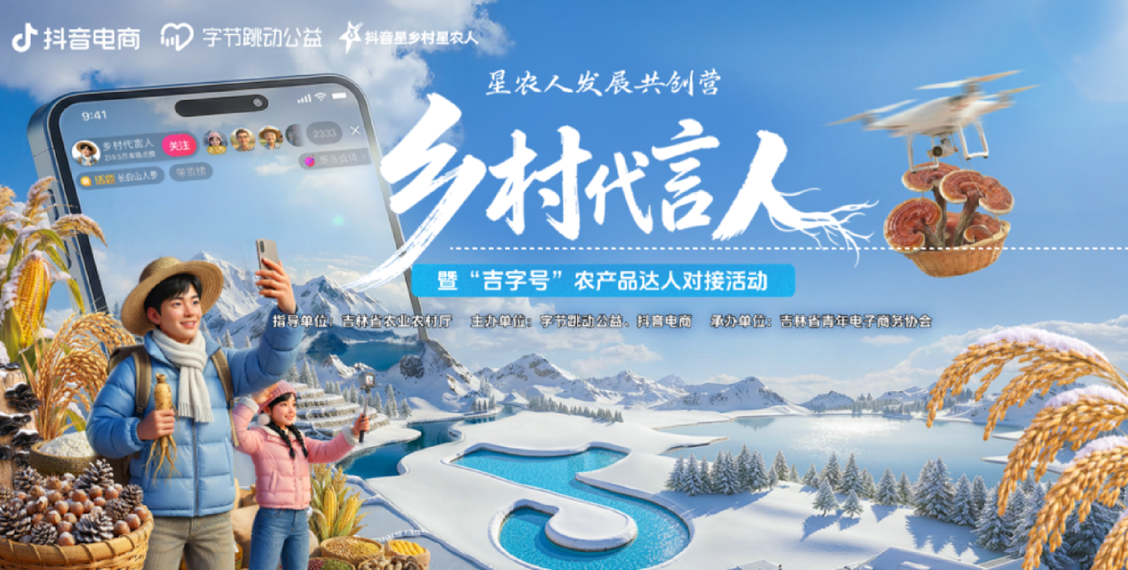 达人团将走进银装素裹的冰雪吉林,在玉树琼枝的诗意画卷中,实地探访食药用菌的规模化种植与现代化加工全流程,见证“吉字号”农产品从田间到产业链的提质之路,深度解读背后的匠心故事与产业动能。 在冰雪新天地,达人们将亲身体验丰富多彩的冰雪项目,于欢声笑语间感受吉林冰雪旅游的独特趣味,并通过“滑雪赏景+吉品带回家”的生动创作思路,打造可观可感、可种草的内容,推动“农业+文旅”深度融合,让吉林的冬天既有美景可赏,更有好礼可购。 活动期间,达人将充分发挥自身传播优势,通过实时直播、短视频打卡、图文分享等多元形式,在抖音等核心平台同步更新采风见闻。从吉林冬天的清晨美景到产业园区的匠心坚守,从冰雪项目的欢乐瞬间到乡村好物的品质呈现,达人们将用最鲜活的内容、最真实的体验,带全国网友“云游”吉林、“云探”好物。让“吉字号”品牌与吉林冰雪文旅资源在全网持续升温。 |