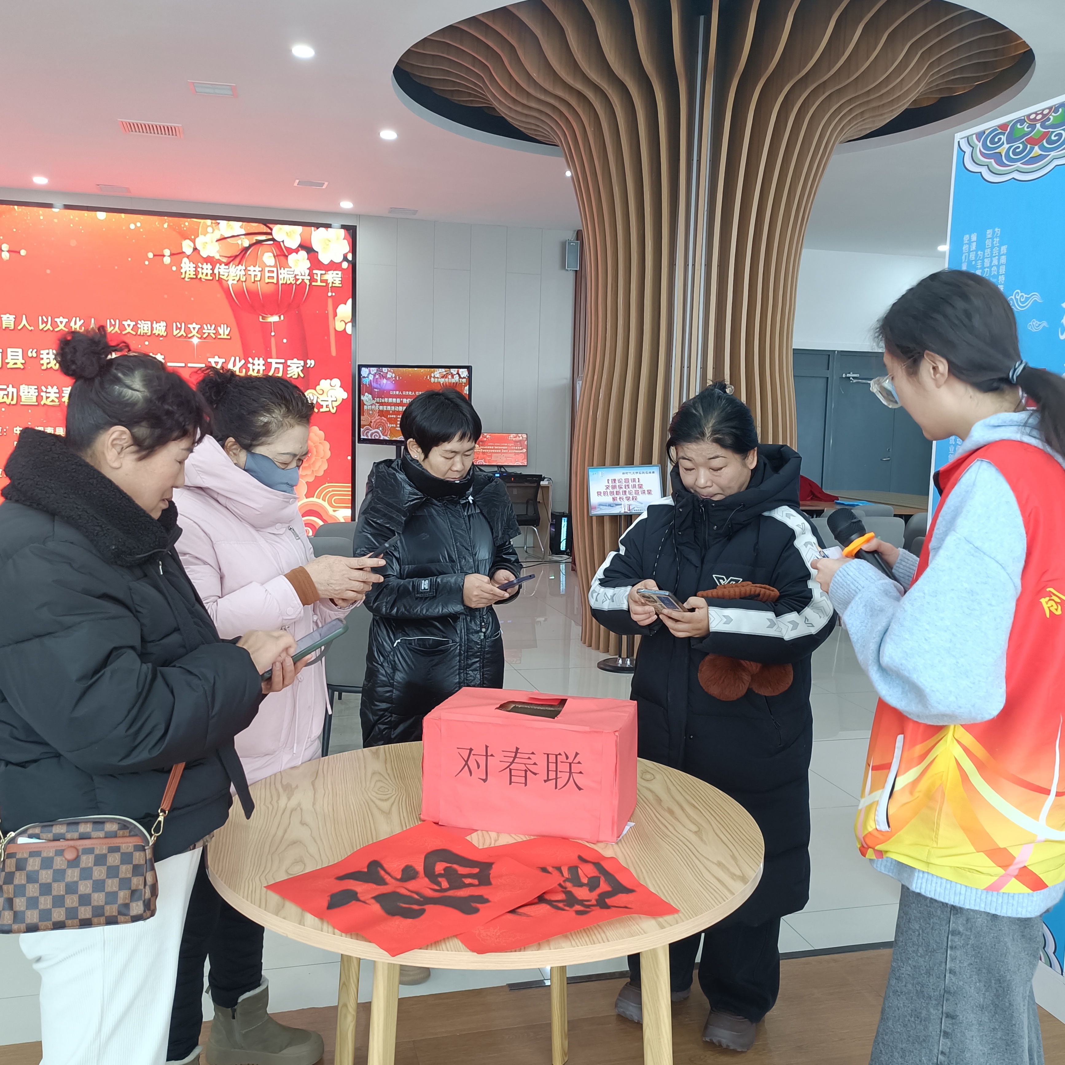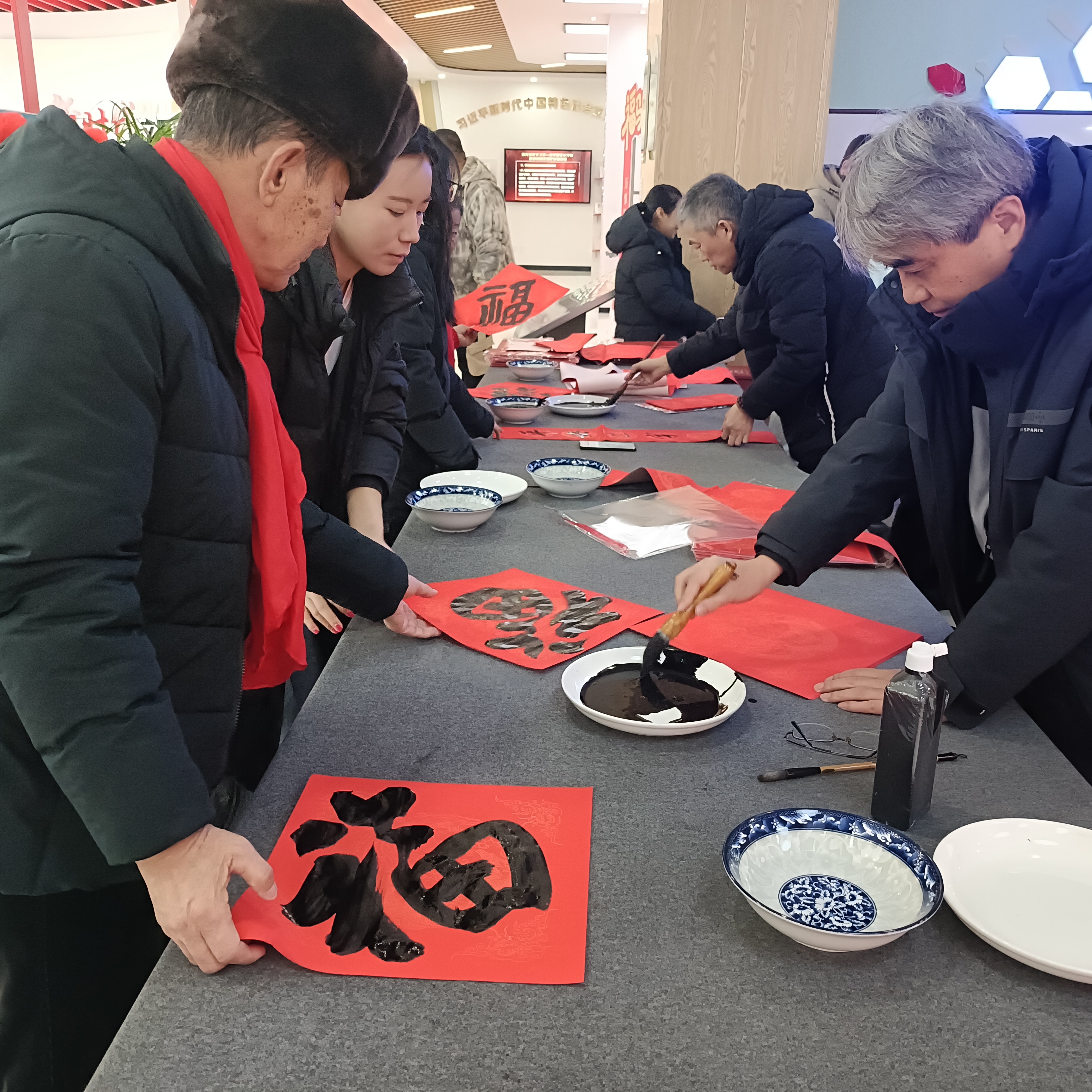 这次送春联、送福字、送全家福文明实践文化志愿服务活动由县委宣传部、县新时代文明实践中心主办,县文联、县文广旅局携手县政协书画院、书法家协会、摄影家协会共同承办,旨在以文化惠民的实际行动,将诚挚的新春祝福与浓浓的年味送到基层一线,送入千家万户,营造欢乐祥和、温馨喜庆的节日氛围。 在县新时代文明实践中心宽敞的活动室,长桌排开,红纸铺就。来自县政协书画院、书法家协会的文艺志愿者们挥毫泼墨,笔走龙蛇,一件件作品在他们的笔下“诞生”。楷书的端庄、隶书的古朴、行书的飘逸,各具风采,承载着对国泰民安的美好祝愿和对幸福生活的殷切期盼。“龙腾盛世千家喜,春满神州万物荣”“福气降临阖家福,春光辉映满堂春”……吉祥的词句映着红纸,瞬间点燃了现场的热情。等候领取春联的群众络绎不绝,脸上洋溢着开心的笑容。