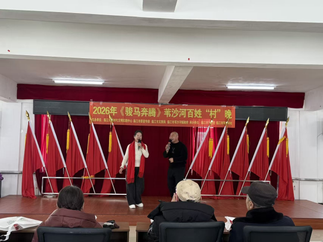 1月22日,由临江市新时代文明实践中心、市委宣传部、市文广旅局、苇沙河镇政府主办,市文化馆、苇沙河村承办的临江市2026年首场百姓“村晚”——“骏马奔腾”主题文艺演出在苇沙河镇苇沙河村成功举办。