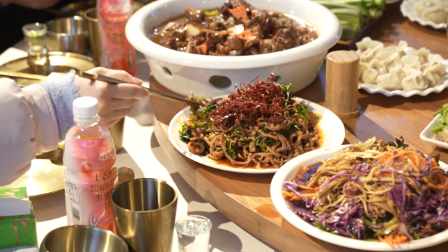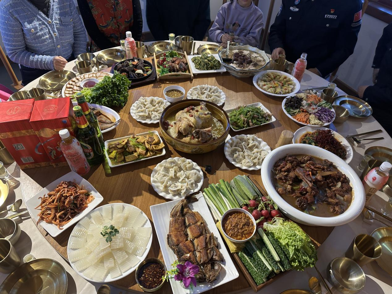 传统四素菜品同样寓意深远,芹菜寄寓“勤劳生财”,愿脚踏实地的耕耘皆有收获;白菜取“百财”之意,象征明明白白发财、清清白白做人;韭菜以“久”为韵,寄托着家人长长久久、团圆岁岁年年的心愿;豆腐谐音“兜福”“纳富”,是对拼搏与收获的美好期许。四荤则以鸡、鸭、鱼、肉为核心,鸡谐“吉”,祈愿新岁吉祥如意、万事顺意;鸭兆春归,寓意新春早临、日子蒸蒸日上;鱼为压轴,“吉庆有余”“连年有余”的美好寓意,让富足与好运绵延;猪肉代表着寻常人家最踏实的幸福,象征丰衣足食、生活殷实。大家一边品尝着地道的长白风味,一边细数菜品背后的故事,老人们耐心讲解着家乡年菜的讲究,年轻人认真聆听、频频点头,暖意与温情在筷起筷落间缓缓流淌。 一桌热气腾腾的年夜饭,盛的是烟火滋味,聚的是四海乡情,藏的是中国人最质朴的团圆期盼,更绽放着长白边境独有的文化温度与节日温情。这场家宴以团圆为纽带,拉近了异乡与故土、坚守与归属、传统与现代的距离,让天南地北的长白人的心紧紧相依;未来,长白也将继续以冰雪为景、以文化为魂、以年味为脉,深耕节日内涵、擦亮文旅品牌,让团圆的暖意融入边城发展的每一步,让这座边境小城在冰雪与温情的交融中,焕发出更动人、更璀璨的时代光彩。 初审:郭小宇 复审:韩铁英 终审:曹梦南 |