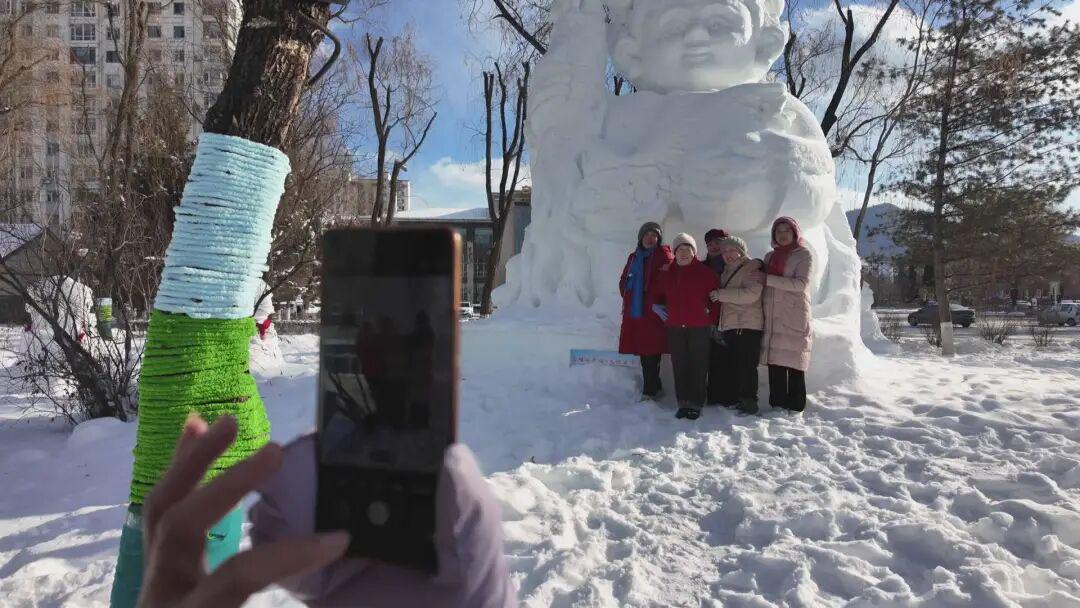 冬日的鸭绿江畔,寒气袭人,却挡不住一股涌动的人间烟火与蓬勃活力。 莲花公园内,栩栩如生的高句丽元素雪雕与生肖萌宠在阳光下熠熠生辉,行道树披上了晶莹的“冰衣”,宛如童话中的冰雪城堡。不远处的江边集市人声鼎沸,“这冰葡萄酒咋卖的?”的询价声此起彼伏,人参酒、特色煎饼等山货特产琳琅满目,游客们穿梭其间,为年货增添一份地道风味。 从特意赶来打卡的外地游客王瑶兴奋的镜头里,到每年必至的本地市民朱芸慧与朋友收获套中鹦鹉的惊喜笑声中,一幅红火热闹的冬日文旅图景在边陲小城集安生动铺展。