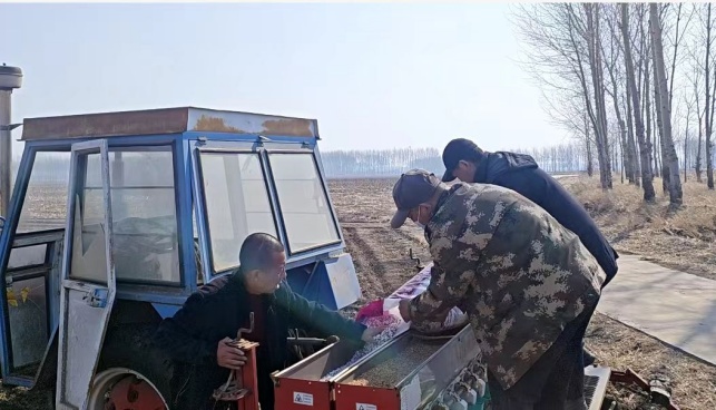 春雪消融,万物复苏。连日来,松原市宁江区伯都乡新安村抢抓气温回升、土壤墒情适宜的有利时机,田间地头机声隆隆、人勤春早,全村小麦春播工作全面启动,拉开了当地今年粮食生产的序幕 。 清晨薄雾未散,新安村的田野上已是一派繁忙景象。播种机匀速穿梭,将一粒粒优质麦种精准播入黑土地;满载麦种、化肥的农用车往来不停,车轮碾过返浆的田地,留下整齐的耕作印记。村民们或查看墒情或调试农机或交流品种与田间管理经验,人人抢抓农时,处处洋溢着春耕的火热气息。