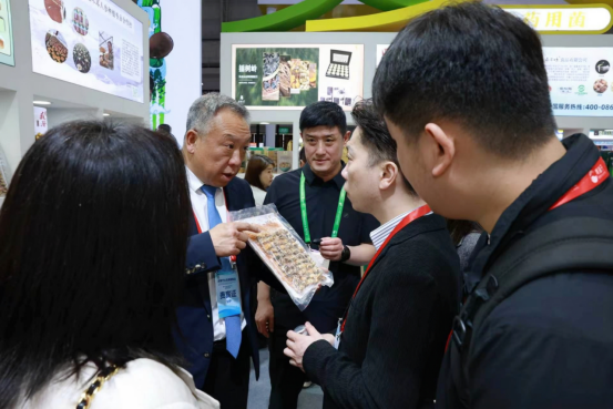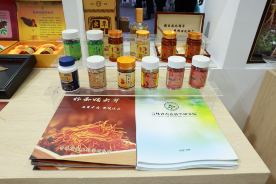 据药理学研究发现,桑黄富含桑黄多糖、黄酮类化合物和三萜类物质三大类核心活性成分,分别在免疫调节、抗氧化抗炎、抗肿瘤辅助与肝脏保护等方面展现出独特功效。据了解,吉林省和龙市是我国桑黄产业的重要基地,种植面积已超130公顷,年产桑黄约150吨,产量约占全国桑黄总产量80%,本次吉林展馆展出了桑黄冻干粉、桑黄黄精冻干粉、桑黄切片等多种产品,吸引了众多展商驻足问询洽谈。 福芝道(吉林)生物科技有限公司是灵芝全产业链公司,是李玉院士团队科研成果转化基地及长白山赤灵芝标准制定单位,本次参展该公司主推福芝道破壁灵芝孢子粉、李玉院士团队专利品种玉木耳、专利新品种桃红木耳三款主营产品,期望招商合作企业,促进科研成果落地,实现“北货南供”,资源互补、优势共享。